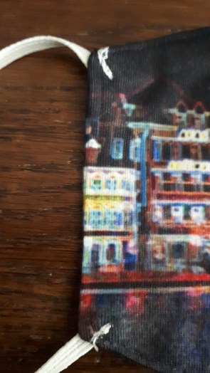AND – most important – the colors are not as vibrant and bright as you might expect them. The pastel colors of the Santa Monica Pier mask are not printed very strong. Yes, it’s pastel colors and they are not supposed to be bold and bright and a statement piece BUT the mask is white in places where it should be turquoise. If I was a regular customer, I would be disappointed by this mask.
